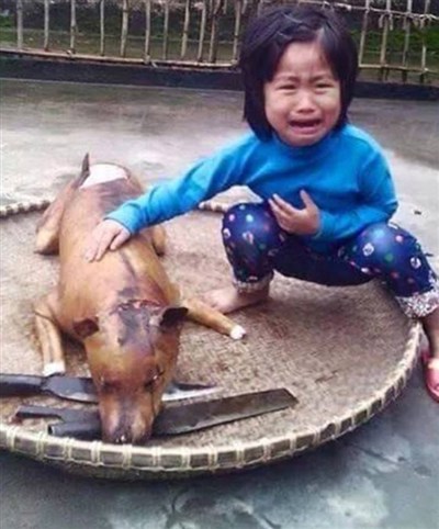 【本報綜合報導】推特最近熱傳一張照片,全球網友看了無不揪心。一名越南女童蹲在地上哭紅雙眼、手觸摸著地上已遭屠宰的狗。據了解,這名5歲女童飼養3年的愛狗「花花」意外走丟,隔沒幾日,她路過狗肉攤時,看到一隻遭屠宰的狗,正是她走失的愛狗。照片意外被拍下後,在網站瘋傳,讓網友痛喊「這殘忍的一刻,為什麼要讓小女孩承受!」
