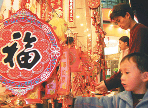 新年到了,小明領了紅包,穿上新衣服,和媽媽到街上逛逛,街上人山人海,到處充斥著小販的喊叫聲和熱鬧的音樂聲。