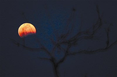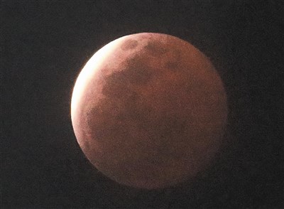 今年月全食剛好遇到兒童節,也是本世紀最短的一次月全食,全食過程(紅月亮期間)大概十二分鐘,最精華的時段是在昨晚間七時五十四分至八時六分,仰頭就可看到紅月亮(左圖/程宜華)。這次月全食特點為月出帶蝕(下圖/中央社)。