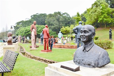 國民黨主席朱立倫昨赴桃園市大溪慈湖陵寢謁陵時,被問到部分縣市拆除蔣公銅像看法。朱表示,歷史的東西,大家互相尊重,如大溪區設置兩蔣文化園區,將它變成歷史的文化。圖/顏彙燕