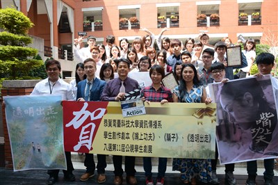 南台科大生編的3部劇本入圍「第11屆公視學生劇展」,獲180萬拍片補助金,校方今天舉行象徵性的「開拍」儀式。圖/吳淑玲