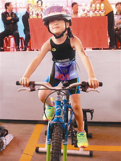 【本報台中訊】年紀分別為十二歲、十歲和七歲的全盲小朋友楊紫羚、林思嘉及梁瑜涵,昨參加神獅盃小鐵人挑戰賽,順利完成騎鐵馬、跑步和游泳賽事。三位小朋友開心表示,騎車過程像火箭在飛,一點也不累,鐵人比賽「我也能做到」。