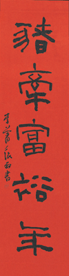 這些都是好意頭的對聯。當然依照生肖年寫的春聯,也很流行,今年是金豬年,有關「豬」的對子也很多。例如: