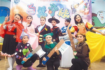 【本報雲林訊】「白雪公主我愛妳!」雲林縣斗六市環球科技大學幼保劇團演技精湛,闖出名號,本月將在雲嘉彰地區文化中心巡演,昨天先到雲林家扶中心愛心首演,饗樂慢飛天使。