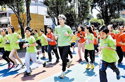 【記者陳玲芳台北報導】董氏基金會三、四年前曾以大台北與五都國、高中職學生為對象,調查發現逾八成兒童青少年認為運動重要,但不到六成有固定運動習慣。擔任「大跑步計畫」代言人的演員李國毅,昨親臨龍安國小,教學童「樂跑五招」,跑出健康。