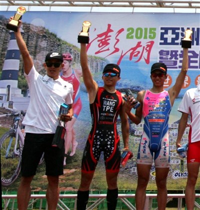 【中央社澎湖訊】全國鐵人3項錦標賽,男女精英組競爭戰況激烈,男子前3名相差不到1分鐘,女子組也只有在5分鐘內,可見實力相當,張團畯稱王並衛冕成功,女子組則由張嘉家封后。
