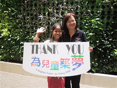 「謝謝台灣的愛心!」西蒙說,這是她第1次出國,很開心可以來到台灣,看到台灣的資助人,感謝他們改變了她的家庭及生命,她覺得當地的兒童沒有台灣的小朋友幸福,現在因為有台灣愛心資助人的幫助,讓她未來懷抱希望。