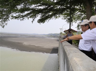 經濟部次長楊偉甫(右)今天前往高屏堰視察,並宣布第三階段限水暫緩實施。圖/中央社