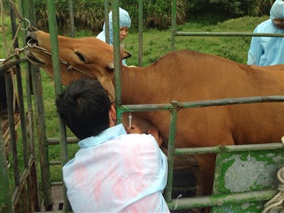 金門縣政府防疫人員和農科院及畜衛所專家今早前往湖南的問題牧場採集牛隻血清送驗。圖/蔡家蓁