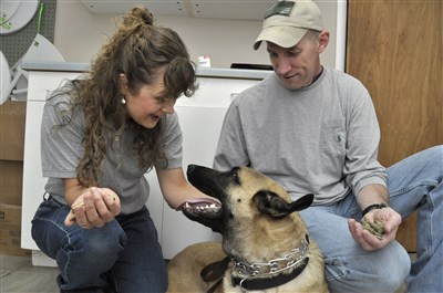 四歲的牧羊犬本諾(Benno)日前接受手術,獸醫從牠胃中取出多顆子彈。圖/美聯社