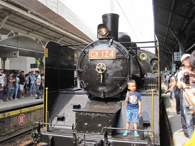 此外,台中站今天也在現場展示蒸汽火車CK124與DT668,吸引許多鐵道迷與大小朋友一早就到場守候。看到蒸氣火車緩緩駛入月台,民眾紛紛拿出手機與相機搶拍「國寶級」火車。