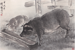 「一龍一豬」比喻人的賢與不肖,相去懸殊。以豬來比喻不肖。