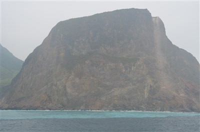 宜蘭縣頭城外海的龜山島龜首崩塌出現一條壕溝。圖/林縉明