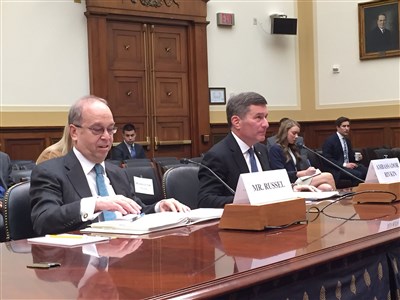 美國國務院經濟與商務助理國務卿李夫金(右)在國會聽證會表示,將於5月底訪台。圖/中央社