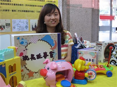 嘉義大學輔導與諮商學系學生林暐云去年暑假在「台灣玩具圖書館」擔任玩具助理。林暐云表示,「最大的成就是製作了一本關於玩具的故事書」,因發現許多玩具是來自各方捐助,同時蘊含和原本主人的互動故事,因此向單位提案製作玩具故事書,最後與香港中文大學新聞系與中文系學生一起發想、找資料,在45天內完成繪本。