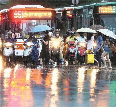 結構完整的梅雨鋒面今天報到,上午出門民眾明顯感受雨勢。 圖/侯永全