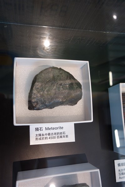清大生科院2館大廳與中庭展示45億年前的隕石,此為生命科學系教授李家維的收藏。圖/郭政芬