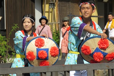 山形銀山溫泉區表演傳統花笠舞蹈的人們。圖/雷光涵