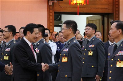 國防部上午舉行104年下半年陸海空軍將官晉任布達典禮,馬總統到現場向晉升將領致意。圖/洪哲政