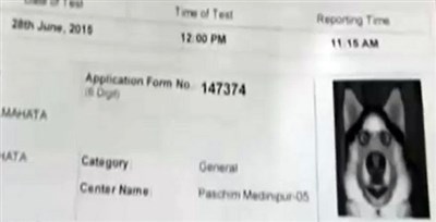 東印度一名今天參加考試的青年,昨天上官網下載准考證時,文件上的照片居然是一隻狗。圖/取自網路