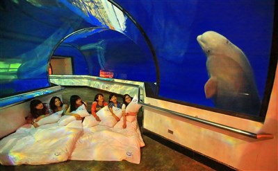【本報屏東訊】國立海洋生物博物館,沒有旅宿相關設施,標謗「與企鵝、魚兒、白鯨共眠」的夜宿海生館,過去相當冷門,沒想到卻大翻身,去年年營業額一舉破億,今年暑假一床難求,明年春節已有人預訂,飯店業者直呼:「不可思議!」