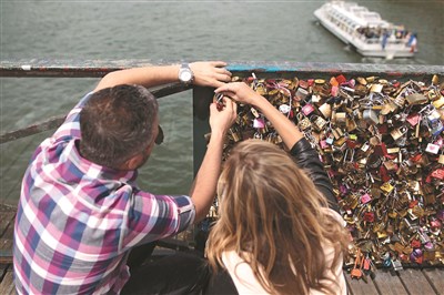 巴黎市政府基於安全理由,6月起拆除藝術橋(Pont des Arts)柵欄上掛滿滿的愛情鎖,避免鎖頭重量壓壞橋梁結構。這些重達45噸的鎖頭目前存放在市府倉庫裡。
