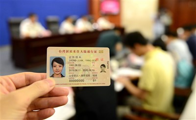 為了提高台灣人來往中國的便利性,大陸政府表示將於6日起定點試發電子台胞證(卡式台胞證)。圖為電子台胞證樣本。 圖/中新社
