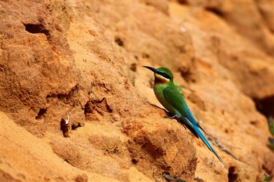 台北市立動物園今日表示,栗喉蜂虎是金門地區極具特色的夏候鳥,長期以來都會因為不明原因將某些蛋踢出鳥巢不孵,動物園決定收集棄蛋後代為孵化,解開棄蛋之謎。圖/中央社