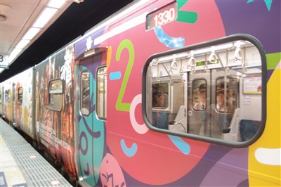 宜蘭童玩節周六登場,童玩節史上首次的彩繪列車「童玩快飛號」2日在台北車站亮相。圖/蘇瑋璇