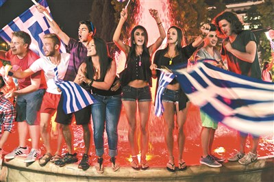 希臘公投,超過6成選民投下「不」的選票。開完票後,多位投「不」的選民在雅典街頭熱烈慶祝。圖/美聯社
