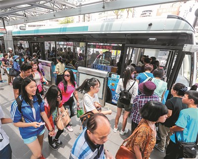 台中市快捷巴士(BRT)今晚10時50分將開出末班車,民眾紛紛把握最後機會搭乘。圖/黃士航