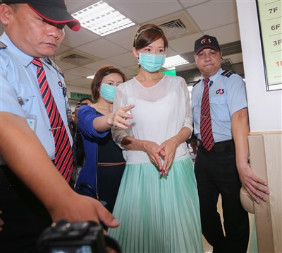 林志玲(中)今天傍晚到台中市中國醫藥大學附設醫院,探訪八仙塵爆受傷的陳宛萱,成為第一位探訪八仙塵爆的藝人。圖/黃士航