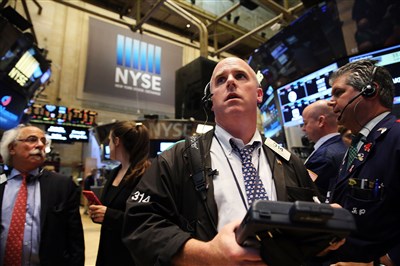紐交所所有股票交易在美東時間8日上午11時32分,因系統當機暫停,交易員一臉不可置信。圖/法新社