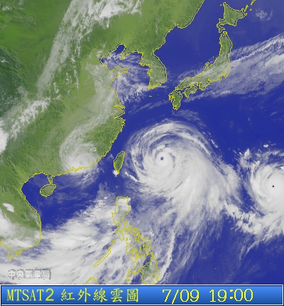 昌鴻颱風晚間7時的衛星雲圖顯示,北北基尤需提高警戒。圖/中央氣象局