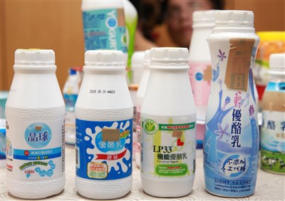 董氏基金會上午公布市售優酪乳、優格巿調結果,調查的39件優酪乳、優格中,發現4件優酪乳屬於「調味發酵乳」。圖/黃義書