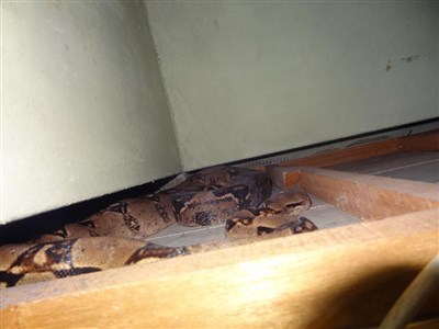 消防隊員抵達現場時,屋主潘姓阿嬤才表示,她孫子飼養一條寵物蟒蛇,因孫子外出多日,她發現蟒蛇不在孫子房間的籠子,由於對蛇的習性不了解,才會害怕打電話請求協尋。