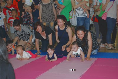 比賽現場的寶寶選手個個「爆」可愛,雖然有些寶寶未能得到獎品,仍可看見寶媽們開心滿足的笑容。為了要鼓勵寶寶往前爬得快一些,寶媽們甚至連手機、錢包與鑰匙圈都丟出來。