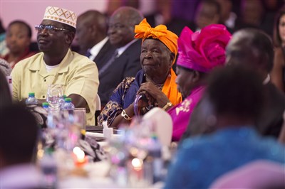 歐巴馬昨天在肯亞首都奈洛比下榻的飯店,請他在肯亞的家人吃晚餐。這一大家族一來就來了30多人,其中包括歐巴馬的繼祖母莎拉媽媽(左二),和同父異母的姐姐歐瑪。圖/美聯社