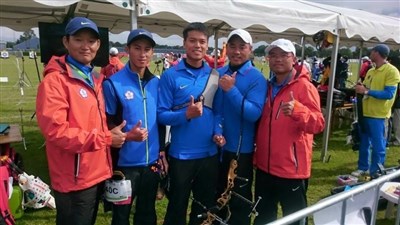 台灣隊在丹麥世錦賽中華反曲弓男團晉級8強,同時取得奧運資格。圖/取自網路