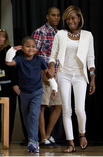 【本報綜合外電報導】美國1名因感染性壞疽失去雙手雙腳的男童,接受手術成為全球年齡最小的雙手移植者。男童28日出席記者會笑咪咪的秀出新手,透露現在最大願望,就是能快點用手丟球。
