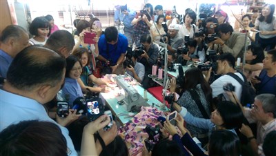 蔡英文上午參訪位於台北後站商圈的戴安娜成衣工廠,還現場試車衣服布邊。媒體詢問,平時會不會逛街買衣服?蔡英文開玩笑說,逛街不太可能,「到最後又被說捕捉到野生蔡英文」,還笑說「買衣服要試穿的,不會在你們面前試穿的」。