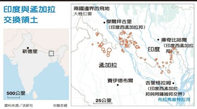 今年6月6日,印度總理莫迪訪問孟加拉時與該國總理哈席娜簽署交換飛地的協議。印度將獲得位於印度本土的孟加拉飛地(約28平方公里),孟加拉則將獲得位於孟加拉國本土的印度飛地(約70平方公里)。