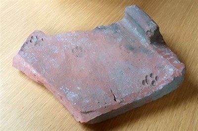 這塊歸類為「tegula」的瓦片上頭印著數枚不顯眼足跡,考古學家比對發現,這些足跡來自2000年前的貓。圖/取自網路