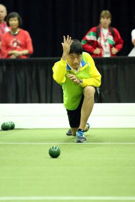 2015年洛杉磯夏季特殊奧運(當地時間)27日滾球團體賽,中華隊楊喬登表現出色,幫助男子團體拿下金牌。圖/中央社