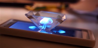 你可以把室內的燈關掉,讓智慧型手機播放影像內容,從旁側觀看這個透明菱形立體,就可以觀賞活靈活現的3D影像。
