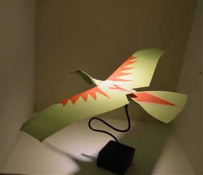 卓志賢創下飛行紀錄最長2分11秒的鳥型紙飛機。圖/廖雅欣