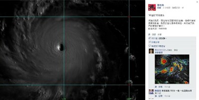 鄭明典在臉書分享蘇迪勒衛星雲圖,颱風眼非常清晰,中心位置宛如黑洞,周遭結構緊密紮實,「很強的颱風,現在有向日葵8號的密集、高解析度衛星觀測影像,颱風的變化看得很清楚。未來幾天我們都要緊盯著它。」
