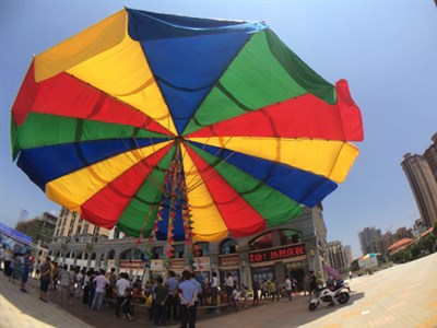金氏中國總部工作人員昨天在現場為這把「世界最大傘」頒發了金氏世界紀錄證書。此前,這項紀錄由印度一把高10.97公尺、直徑17.06公尺、淨重2.2噸的巨傘保持。