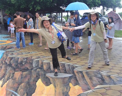 布袋鎮好美里立體彩繪壁畫、地景完成後,吸引不少遊客。圖/中央社