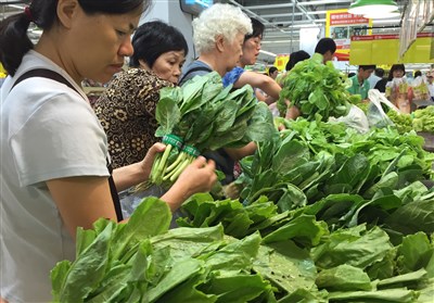 今日台北傳統零售市場交易熱絡,地瓜葉一斤60元、絲瓜一斤35元、進口的綠花椰菜一顆35元;其他葉菜類空心菜、莧菜一把20元、高麗菜一斤45元,部分菜攤仍買得到三把50元的青菜,但陳姓菜販預期,明後兩天價格還會再攀升。